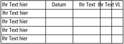 Wählen Sie diese Option, wenn Sie eine fertige Grafik-Datei haben oder wenn Sie die Vorlage zu Trodat Printy 4915 in Word, Excel oder Powerpoint gestalten wollen. Sie können folgende Formate hochladen: EPS, PDF, PSD, DOC, XLS, PPT Wir stellen auch Dateien im korrekten Format 70×25 mm für den Trodat Printy 4915 für die gängigsten Programme zur Verfügung. Sie können diese herunter laden, auf Ihrem Computer bearbeiten und dann im nächsten Schritt wieder hochladen.